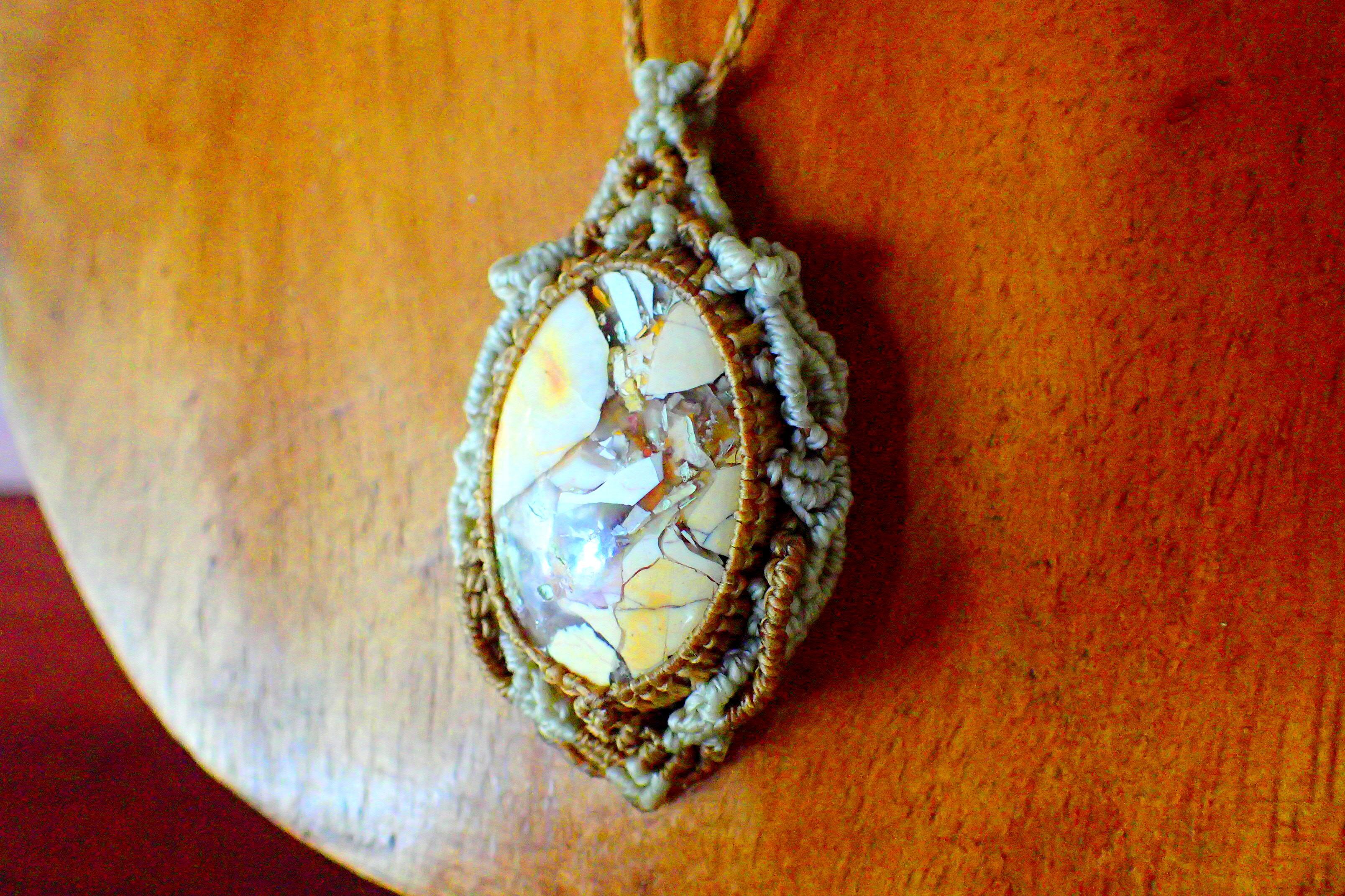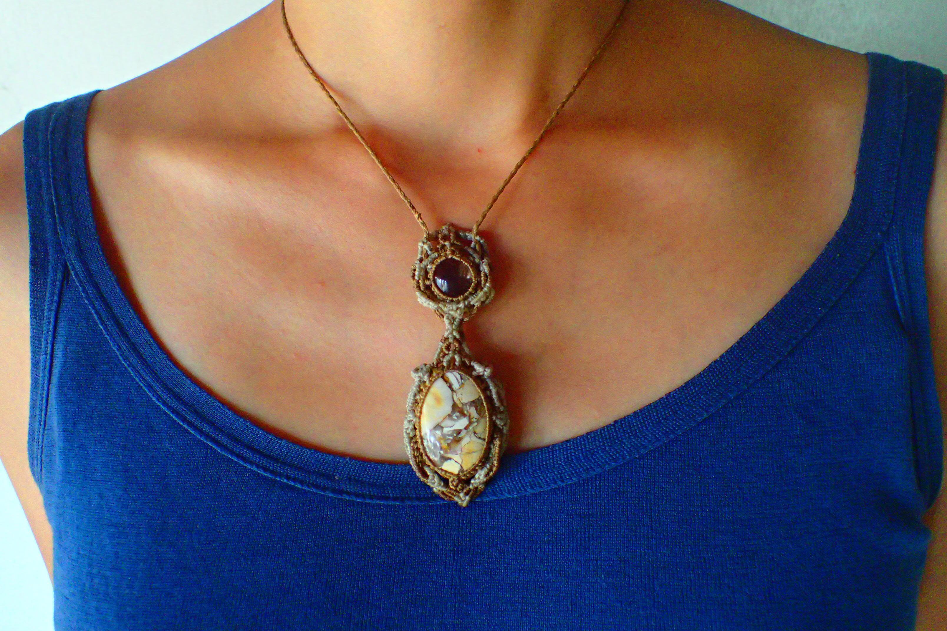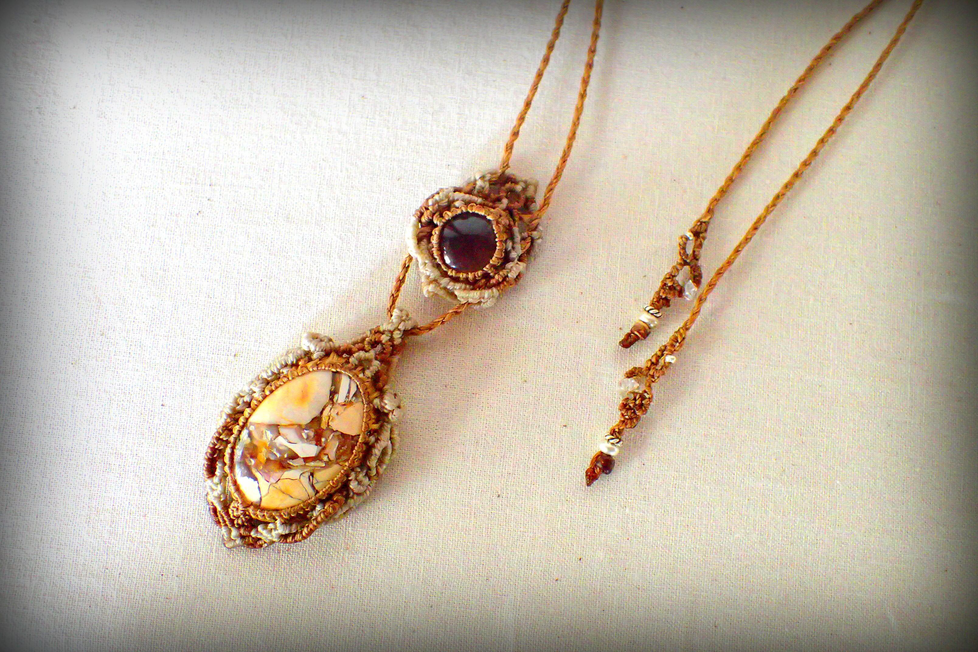 ピクチャージャスパー、スモーキークォーツマクラメペンダント
