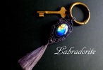 光の反射で石全面を見事な玉虫のように神秘的に輝く(ラブラドレッセンス)を持つラブラドライトを真鍮の丸形のカラビナを取り付けたマクラメキーホルダーです。