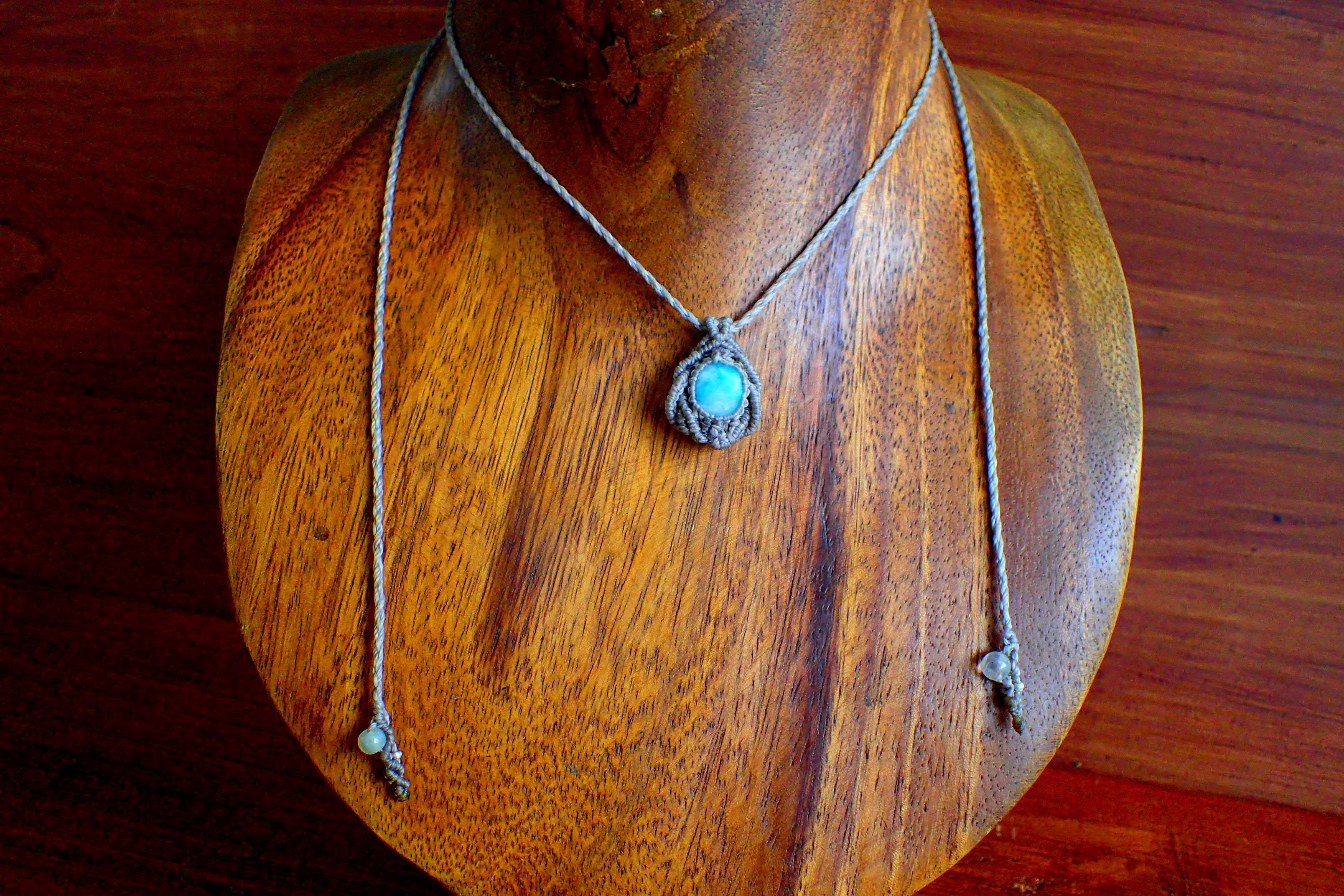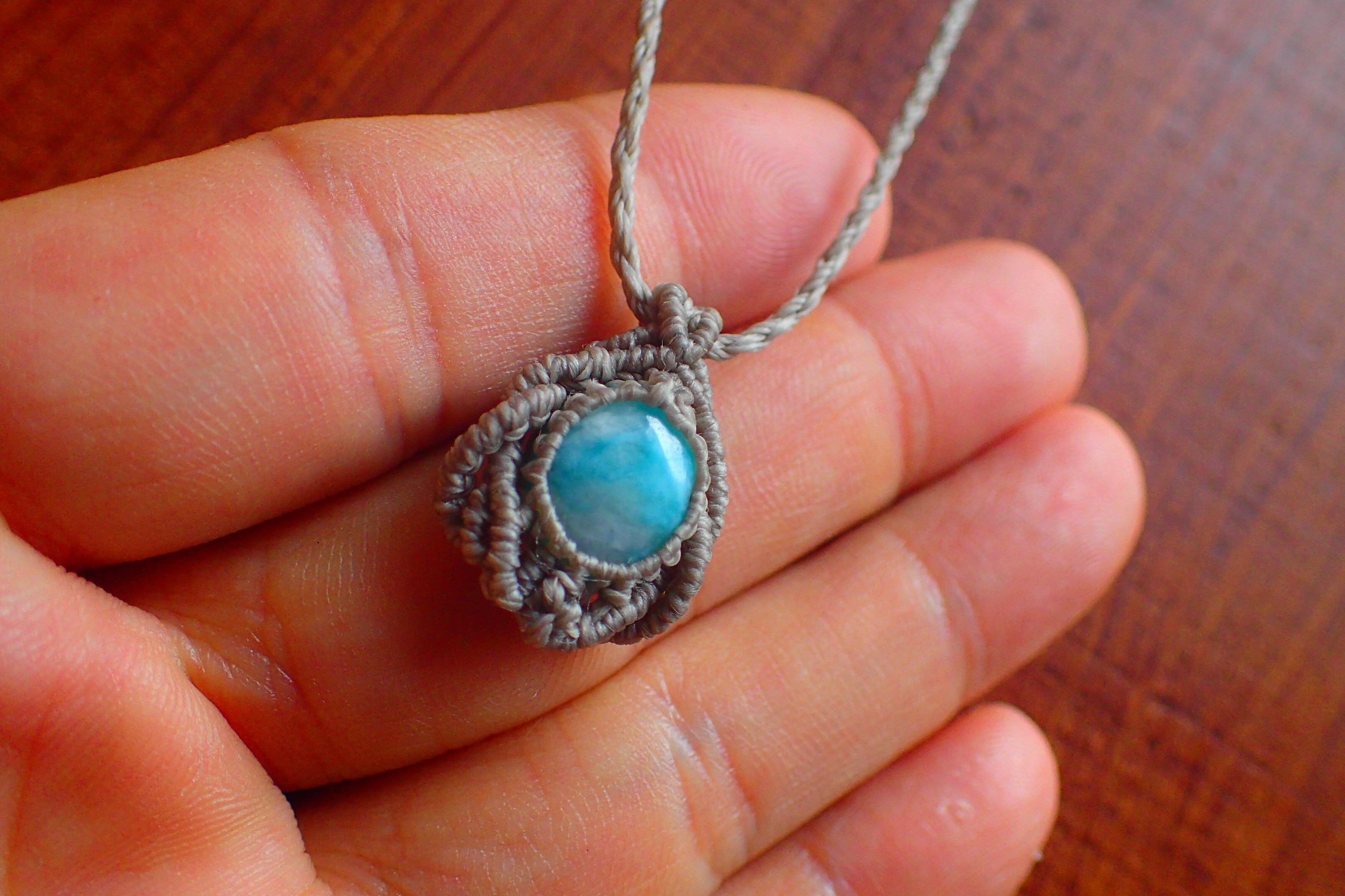 美しい南国の海を連想させる色合いの小さめのラリマーをマクラメで装飾を施したペンダントです。