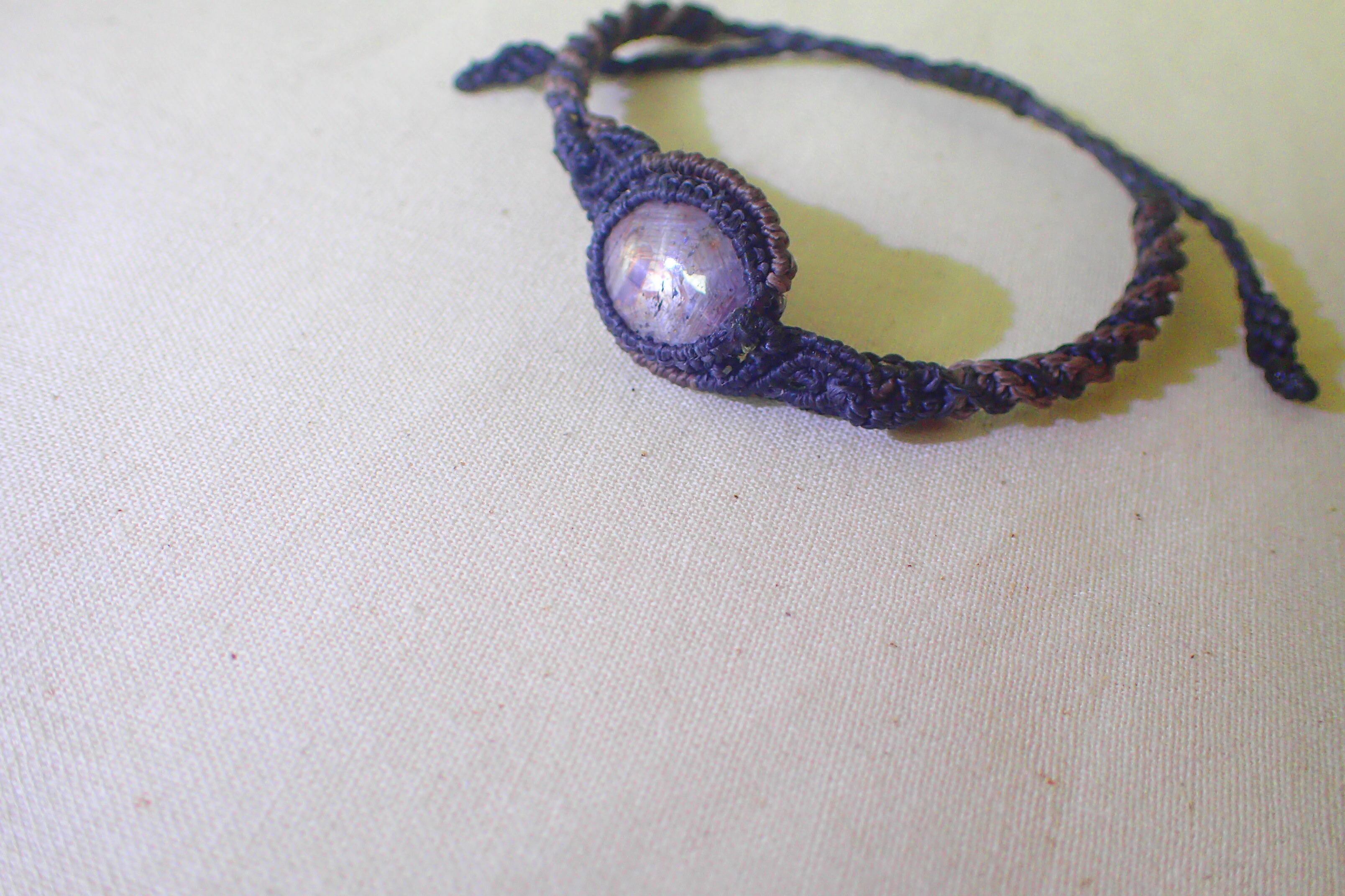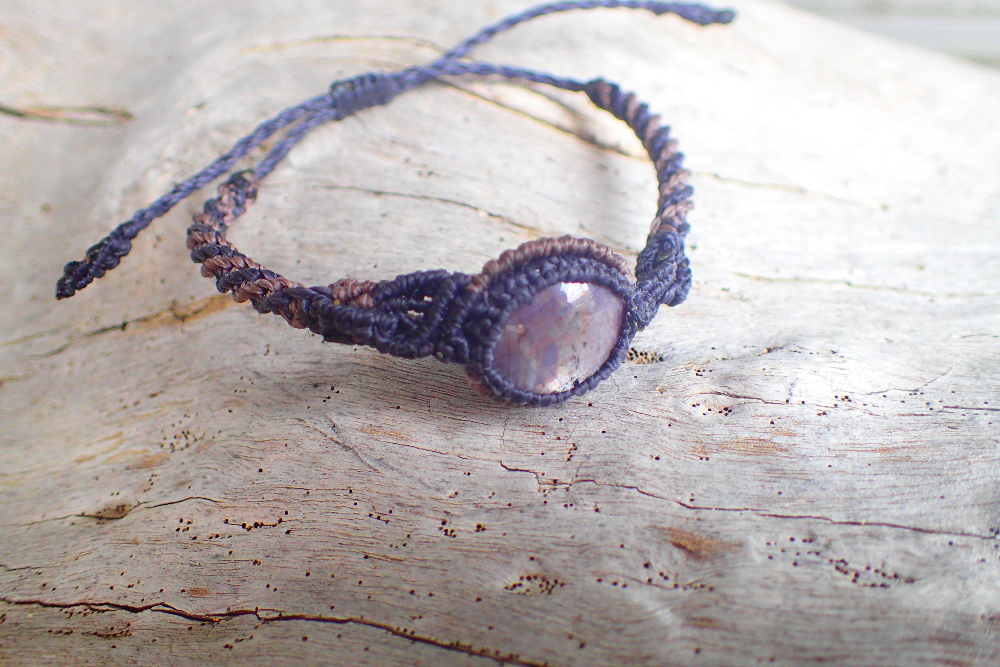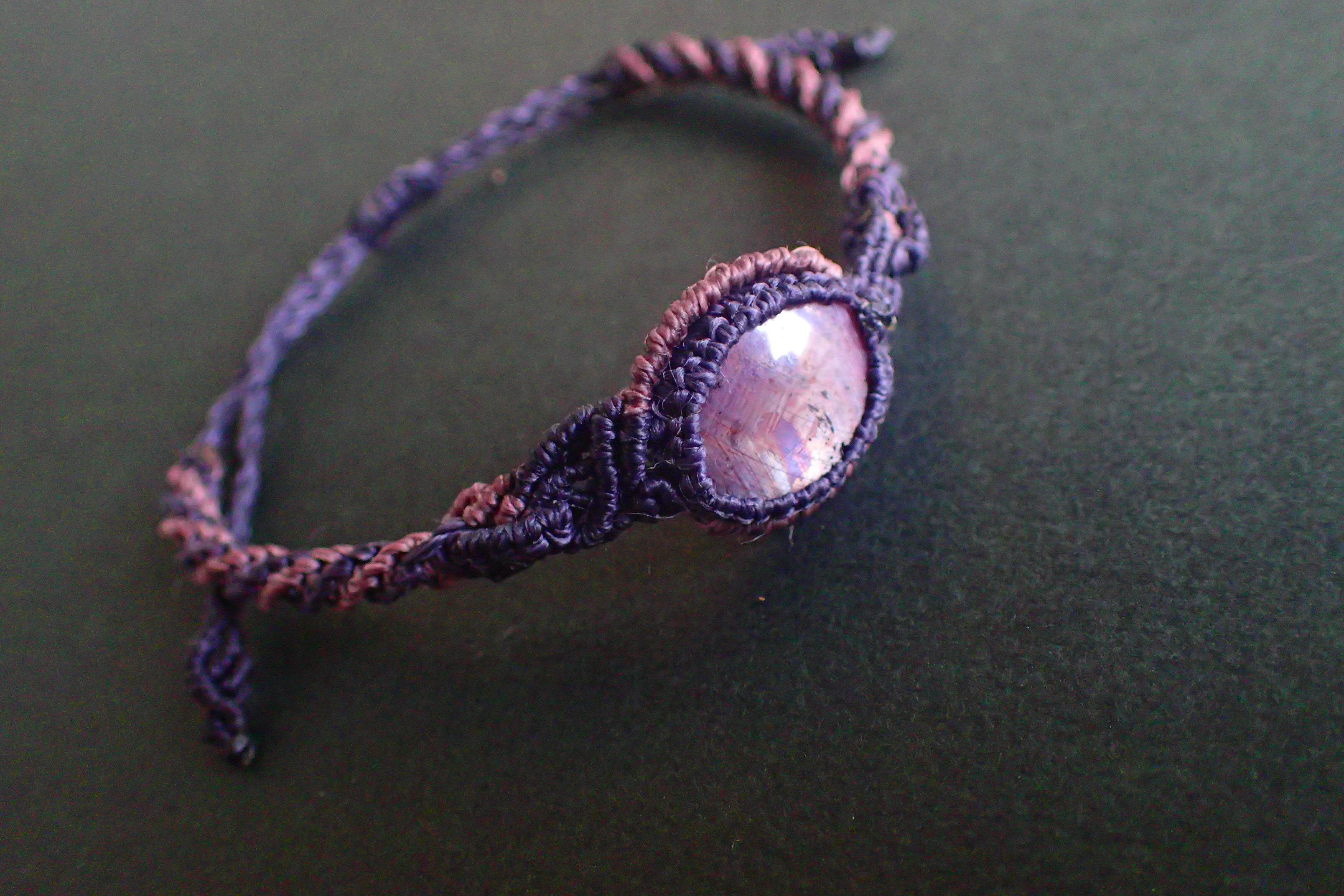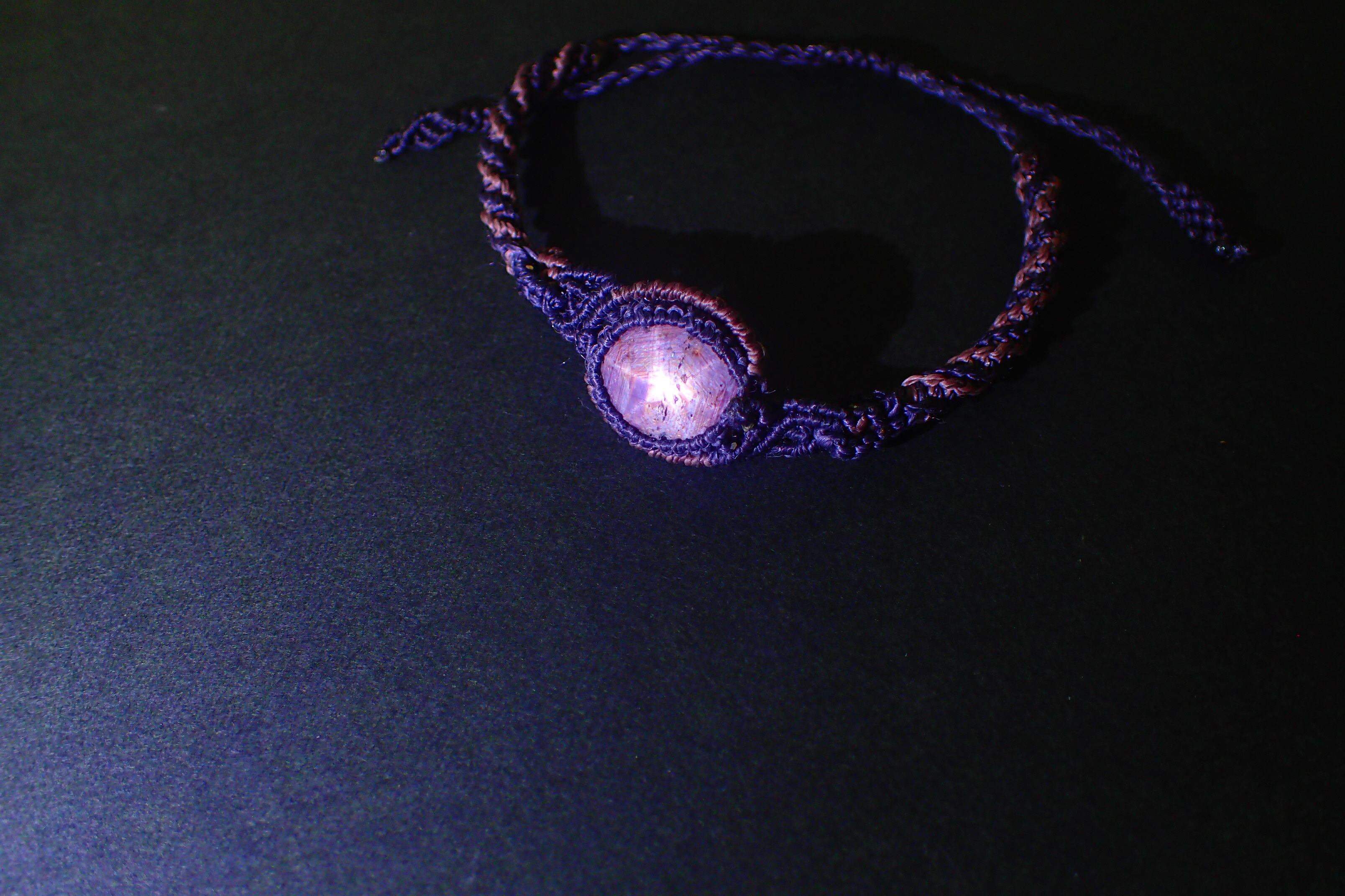 光が当たるとシルクインクルージョンと言われるスターが出るスタールビーのマクラメブレスレットです。