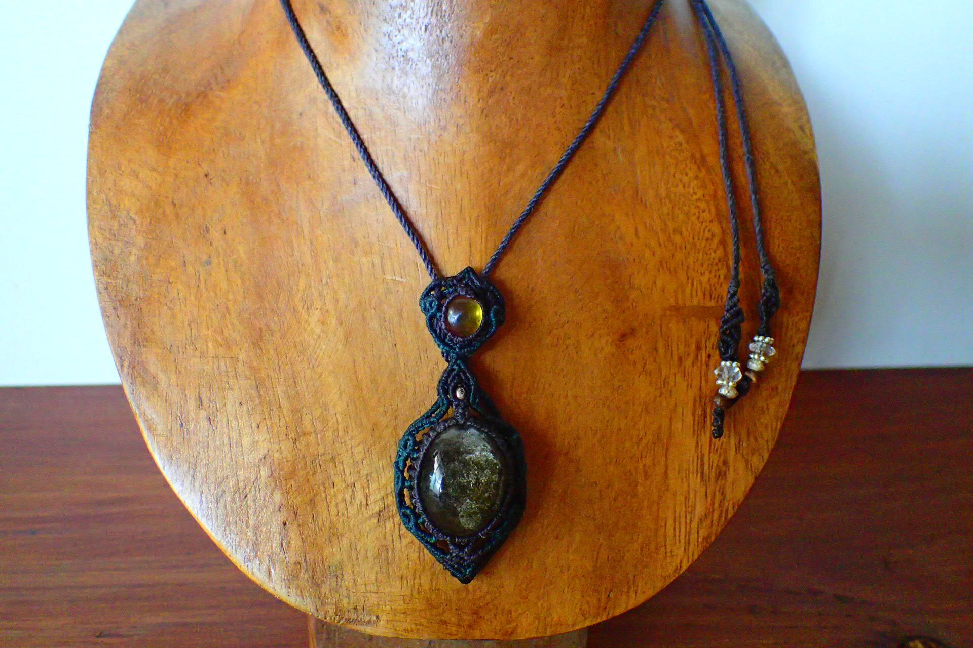 ガーデンクォーツ、アンバー、マクラメペンダント