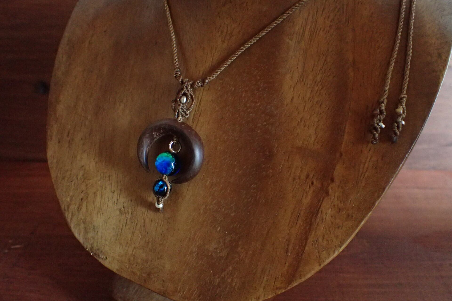 光る琉球蛍ガラス×ゆすの木 三日月ペンダント