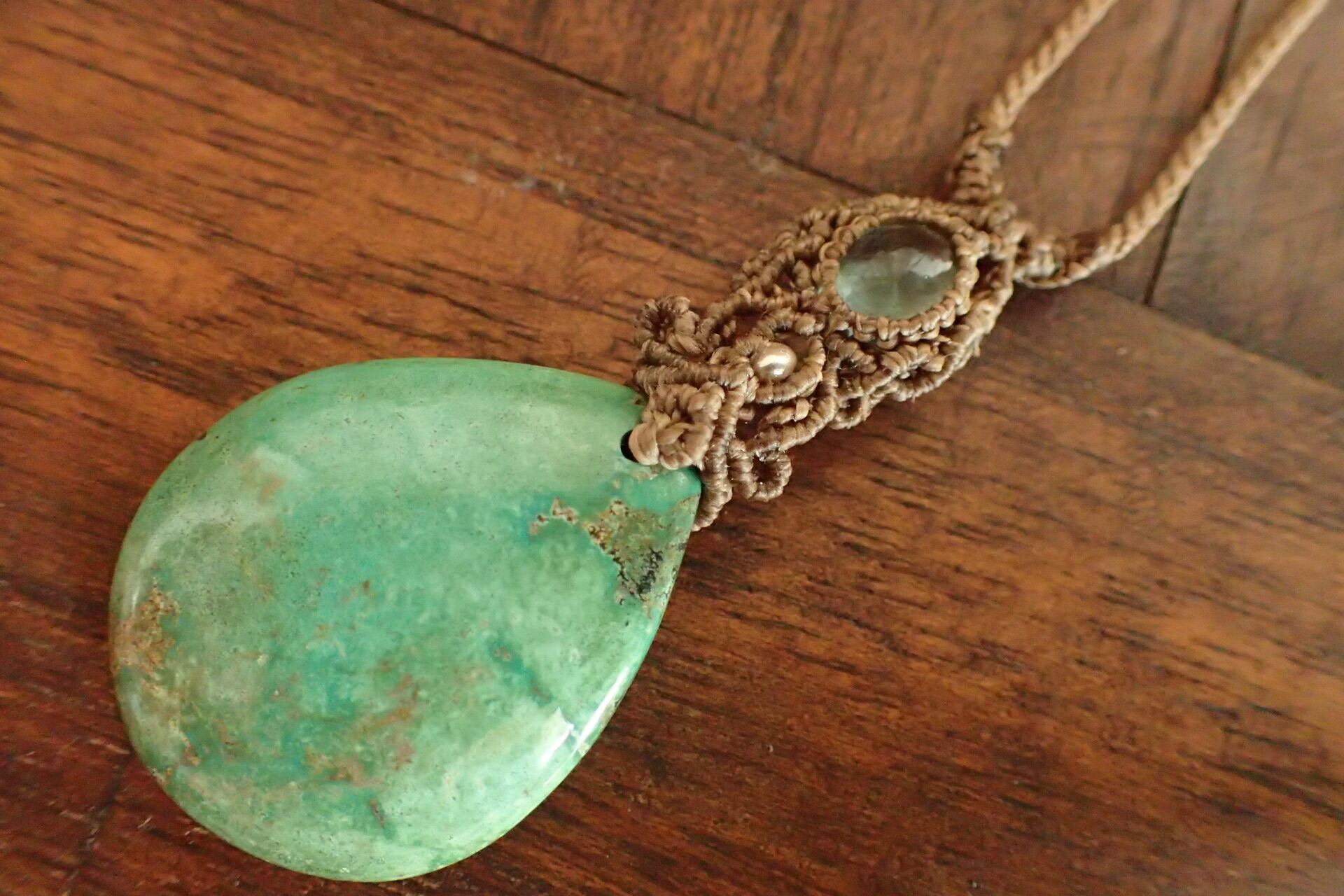 チベタンターコイズ、アクアマリンマクラメデザインペンダント