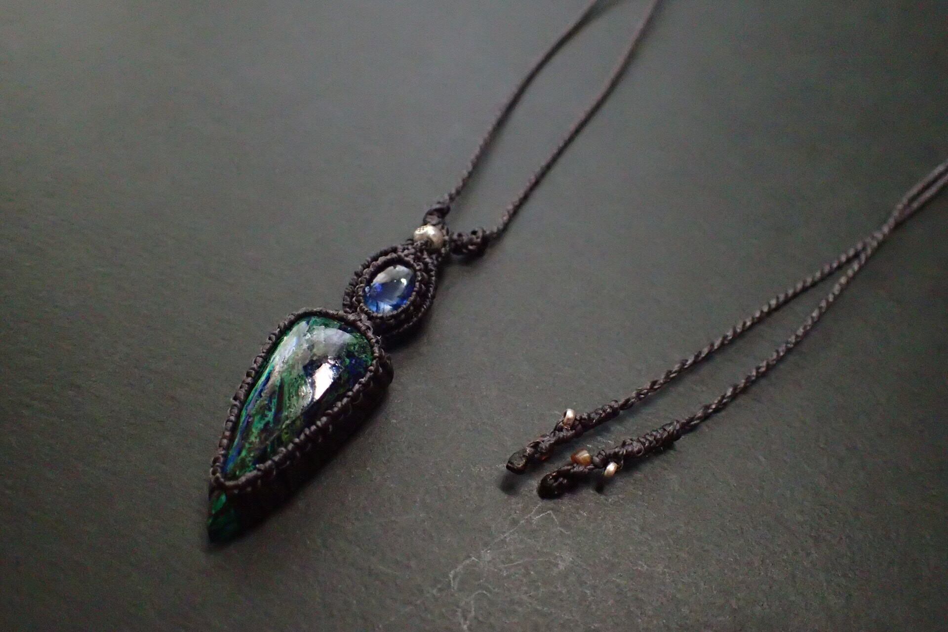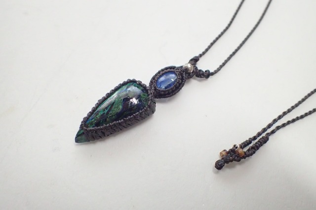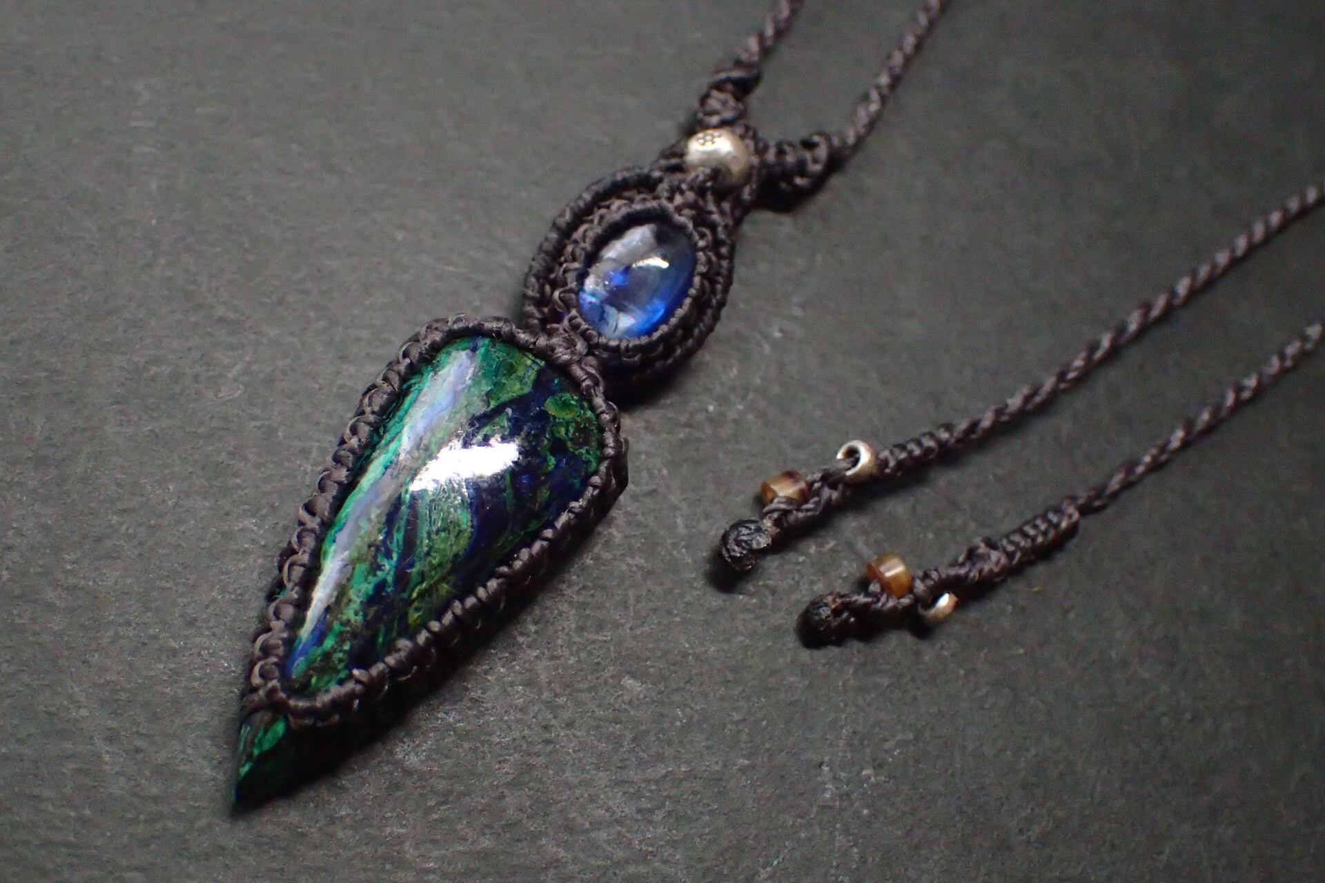 アズロマラカイト、カイヤナイトマクラメペンダント