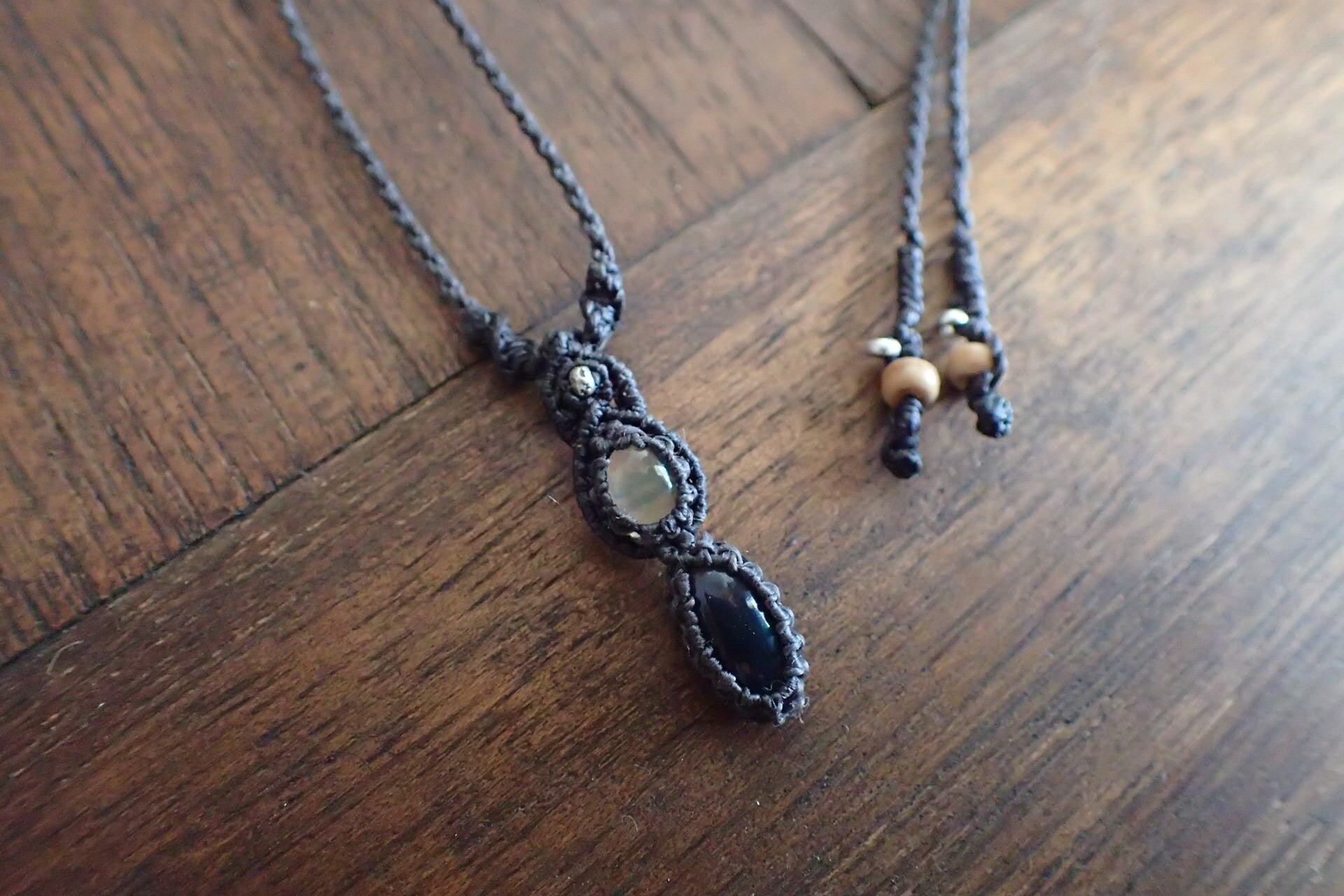 ブラックエチオピアンオパール、ホワイトオパールマクラメペンダント