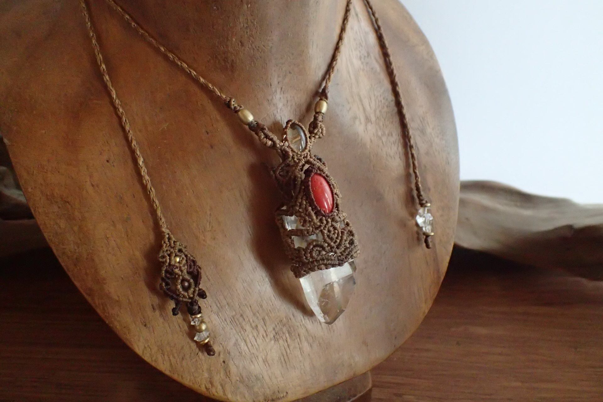世界最高峰ヒマラヤ山脈のクル渓谷で採掘された、標高の高さを感じさせる透明度の高く、素晴らしいレインボーや照り輝きのある、カテドラルタイプの水晶に、イタリアの地中海で取られた天然の赤珊瑚のルースと、水晶の中に金鉱石(ルチル)をきれいに内包した、ルチルクォーツをマクラメ装飾し一つにした、ペンダントです。