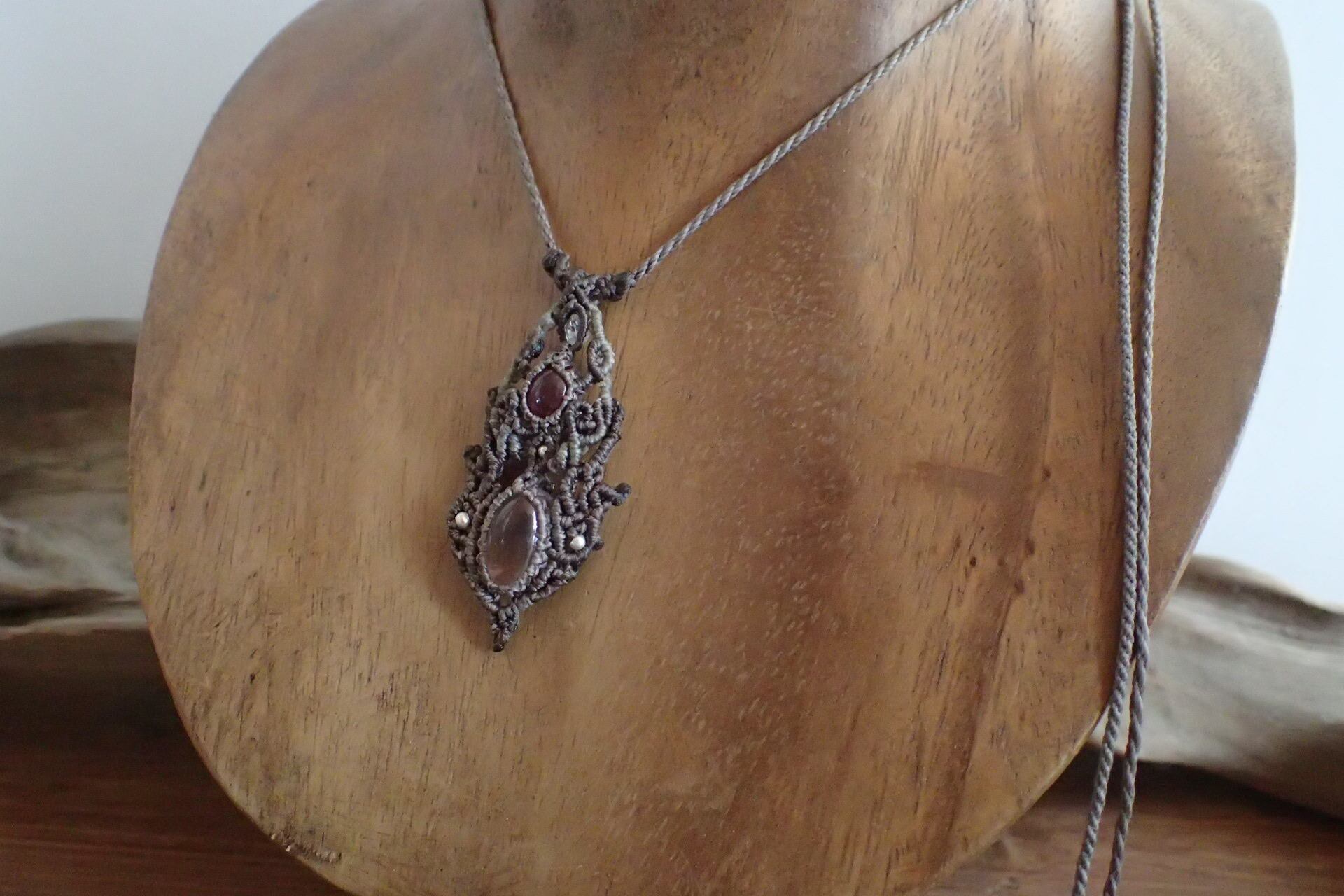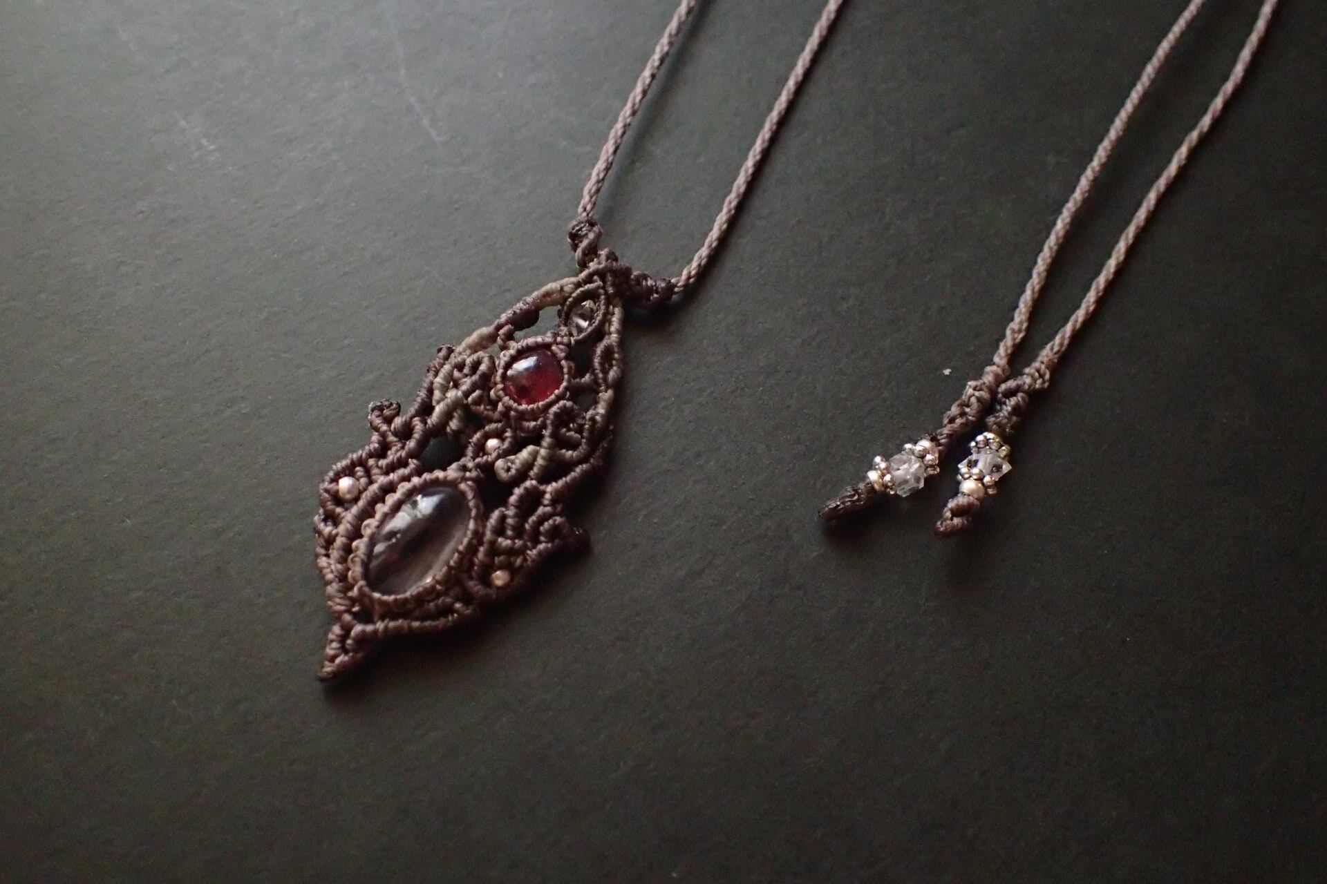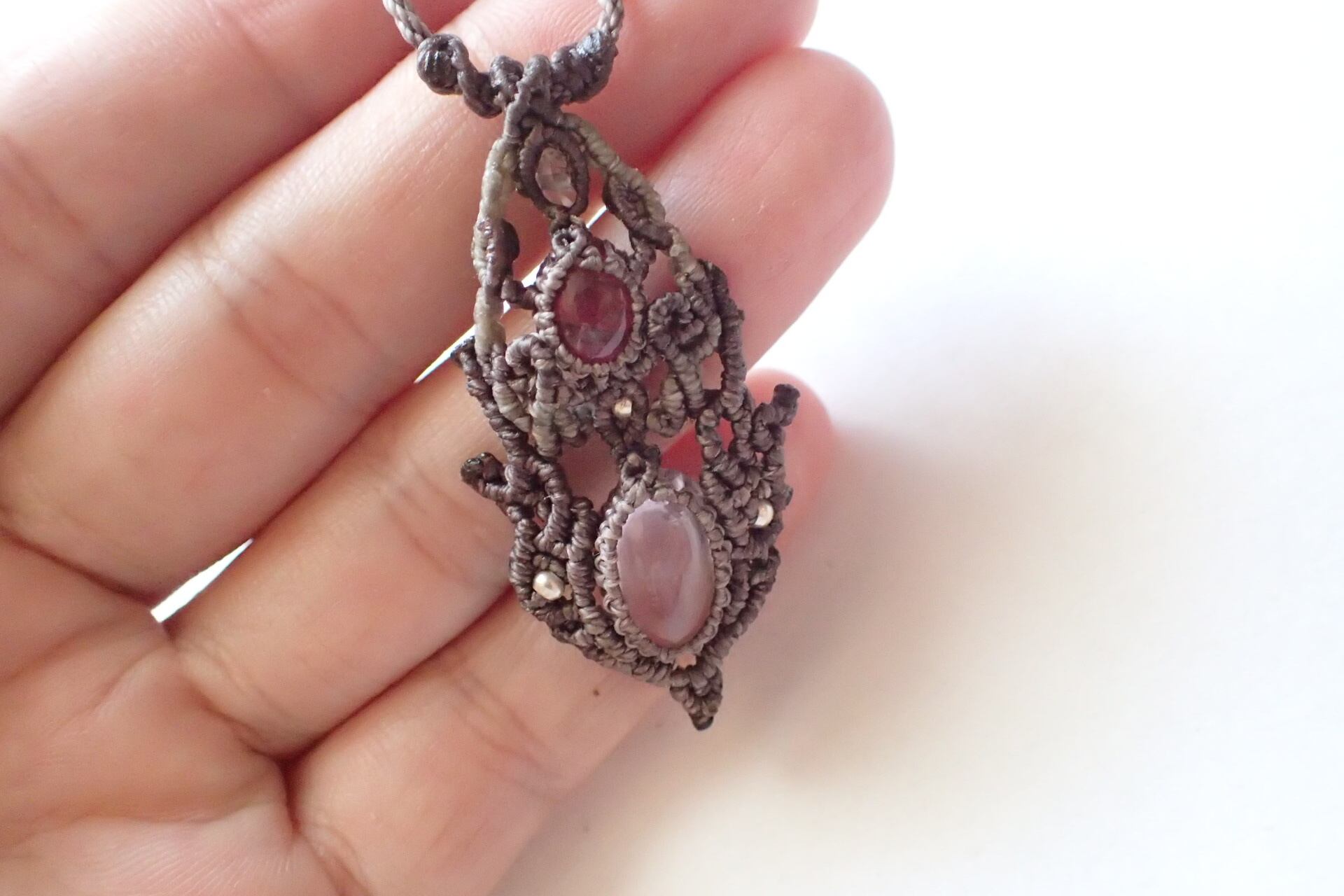 クンツァイト、ピンクトルマリンマクラメペンダント Kunzite,Pink tourmaline mini macrame pendant.
