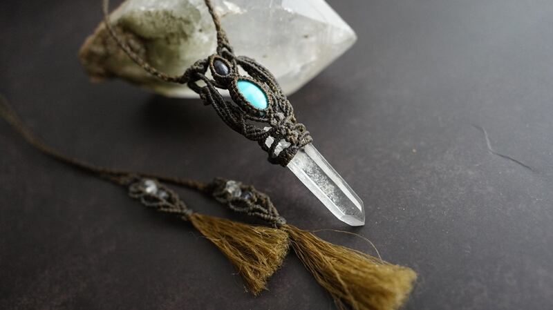 ネパール(マカルー)産水晶・アリゾナターコイズ・アイオライト マクラメペンダント