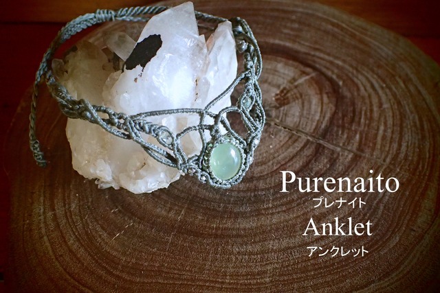マスカットカラーが涼しげなプレナイトをトップに、カレンシルバーのビーズとアクアマリンのビーズあしらった、デザインアンクレットです。